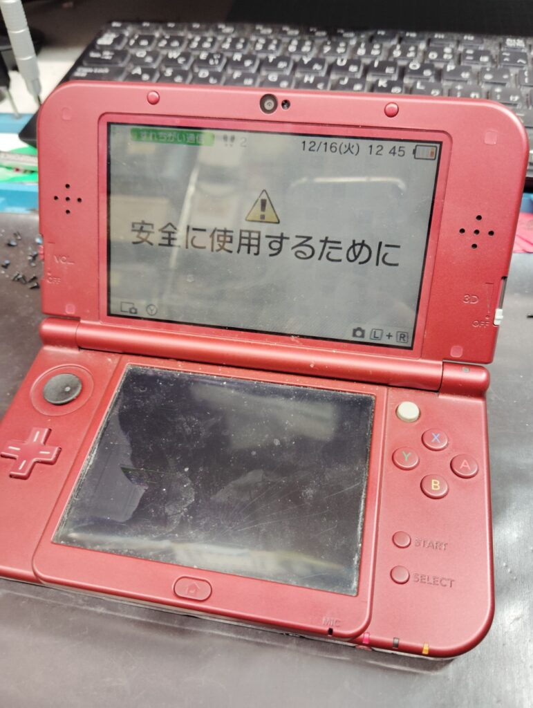 修理完了後、ピカピカの新しい液晶に交換された3DS LLを起動します。
