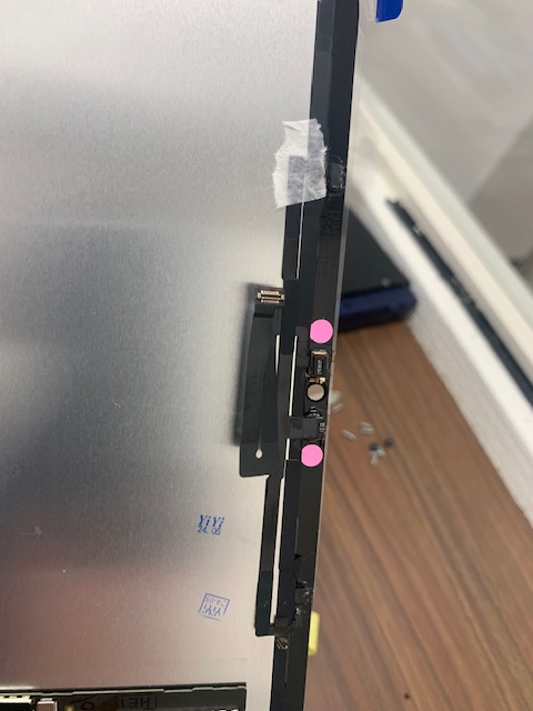 画面部品が外せたら、センサーケーブルを新しい画面へと移植して、後は元通りに組み立て直すだけです。