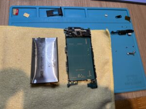 基板からバッテリーを取る際の細心の注意をしながら外していきます。