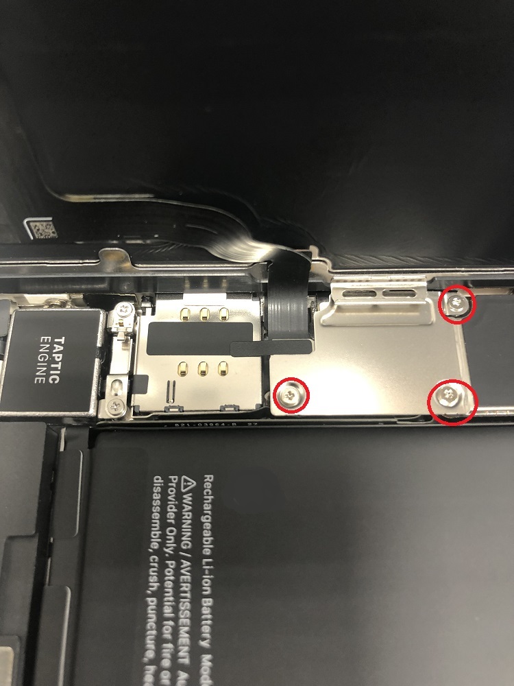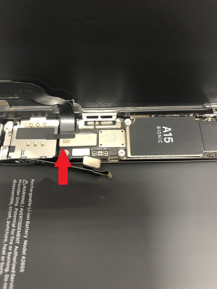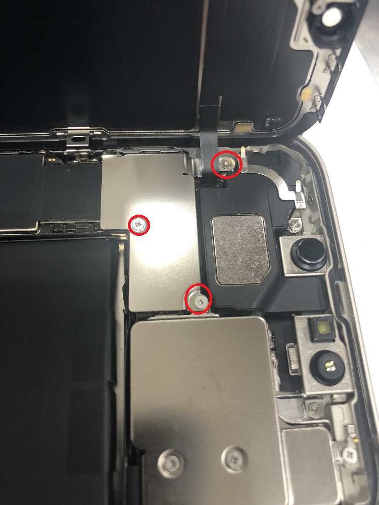 しかし左側にはカメラ、FaceIDのセンサーケーブルや画面のケーブルがあるので触りません。