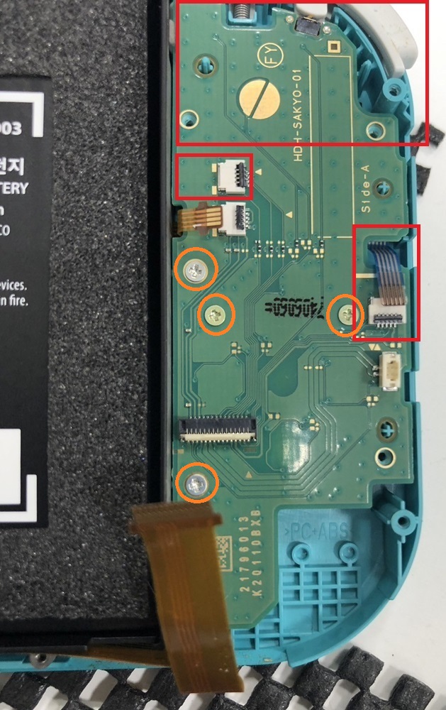 ここからは左スティックを取り外すために、基板上のパーツやコネクターを外します。