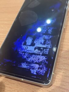 このように落下の衝撃により液晶が黒くそして青色にも変色してしまい