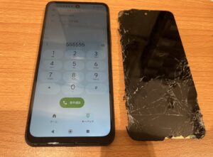 症状としましては落下の衝撃により画面が割れてしまったとのこと。