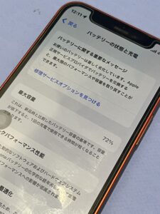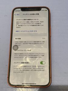 ちなみに状態を拝見しますとバッテリー最大容量72%とかなり劣化していました。