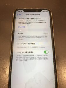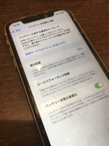充電の減りが早いとのことで、状態を確認したところバッテリー最大容量が72%でした。