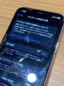 そして端末のバッテリー状態を拝見すると75%とかなり劣化している状態でした。