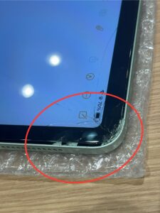 ご来店時の状態としましては落とした衝撃で画面右下の角が割れてしまったとのこと。