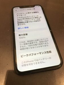 約40分程の修理でバッテリーは最大容量が100%まで戻っていますね!サービス表示も消えていました。