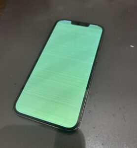 状態を確認したところ画面が全体的に緑色になっていますね。これは液晶不良によりこのような