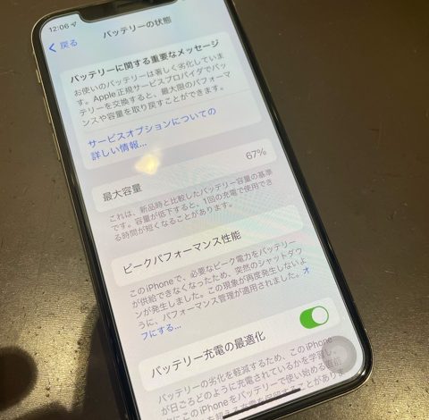 ご来店時の状態といたしましては、バッテリーの最大容量が80%を切っており