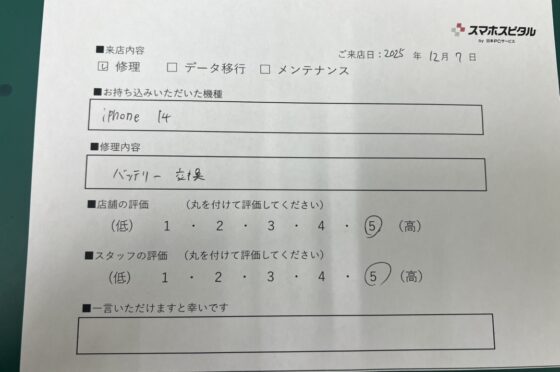 【お客様の声】iPhone 14のバッテリー交換のお客様にお声をいただきました。