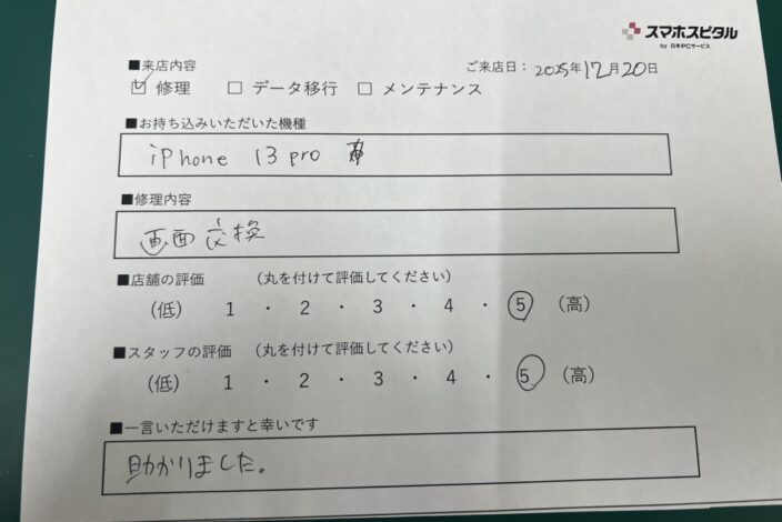 SE2の画面交換に来ていただきました。