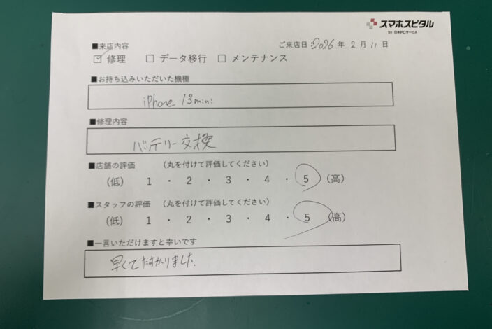 スマホスピタル京橋 【お客様の声】iPhone 12Proの画面交換のお客様にお声をいただきました。