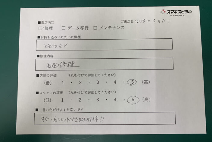 この度はスマホスピタル京橋店をご利用いただきありがとうございます。