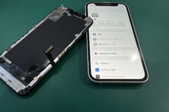 衝突ダメージの蓄積により液晶がブラックアウトしたiPhone12miniのディスプレイ交換修理