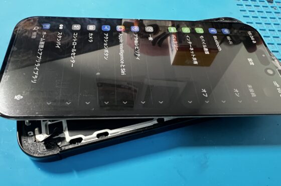 落下衝撃により画面割れ/液晶不良を引き起こしたiPhone15Proのディスプレイ交換修理