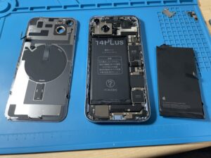 今回はiPhone14 Plusのバッテリー交換修理をご依頼いただきました