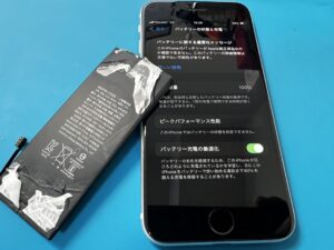 経年劣化により電池最大値が減ったiPhoneSE2のバッテリー交換