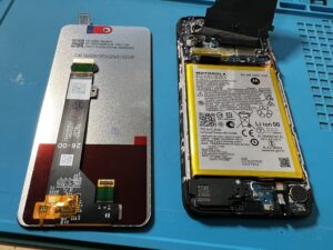 水没によって液晶が映らなくなったモトローラ【moto g53j 5G】の乾燥洗浄とディスプレイ交換