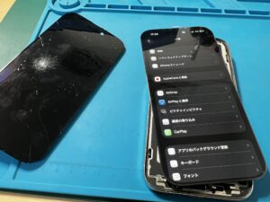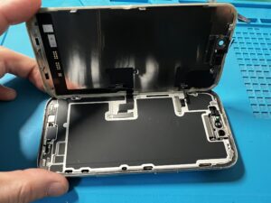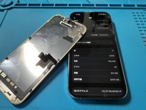 落下衝撃で画面割れしていたiPhone16、液晶までダメージが出現したためディスプレイ交換修理