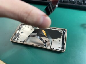 AQUOS sense6は画面開けなので、ヒートマットなどで温め粘着を弱めながら丁寧に開いていきます。