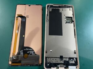 AQUOS sense6は画面開けなので、ヒートマットなどで温め粘着を弱めながら丁寧に開いていきます。