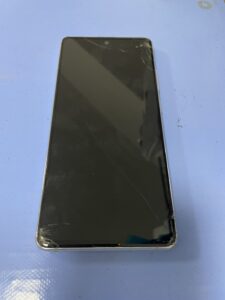今回修理紹介のGalaxy A51液晶われによってつかなくなってしまった状態です。