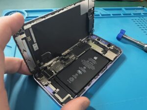 ↑黒色のバッテリーの左隣がiPhone12miniの基板です。