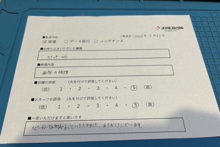 スマホスピタル名古屋駅前 iPhone7のバッテリー交換修理でご依頼されたお客様よりお声を頂きました。