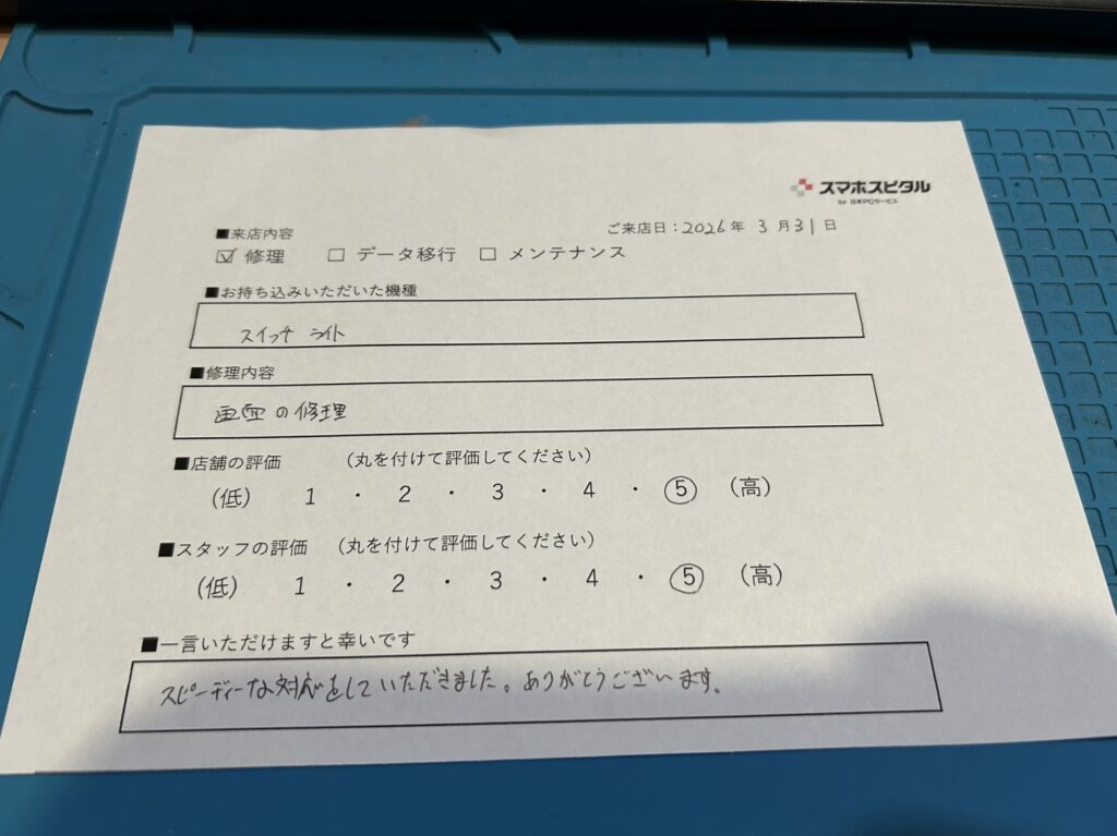 スマホスピタル名古屋駅前 SwitchLiteの液晶交換をご対応させていただたお客様からお声をいただきました!