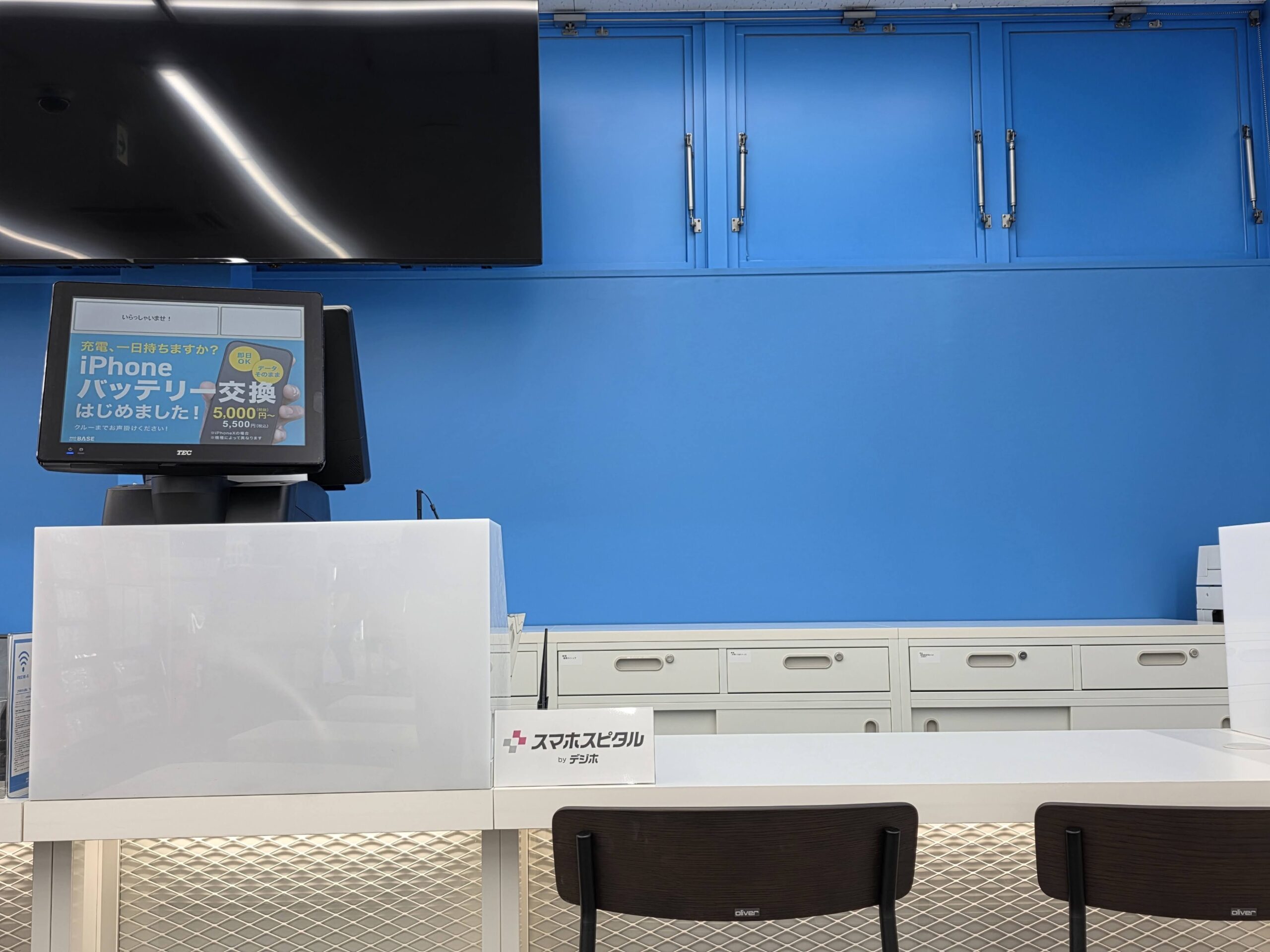 おおよそ1時間前後で修理完了します。端末の状態や混雑状況により所要時間が異なりますので詳細な作業時間は受付時にご案内いたします。