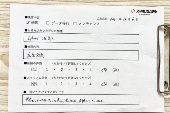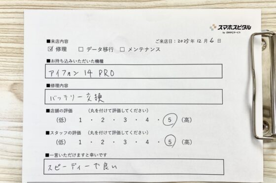 弊社の修理サービスをご利用いただいきましたお客様の声です。
