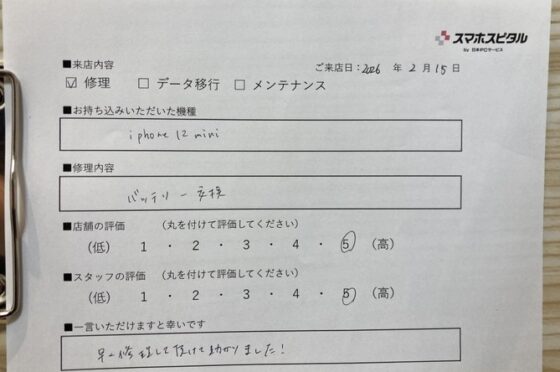 弊社の修理サービスをご利用いただいきましたお客様の声です。
