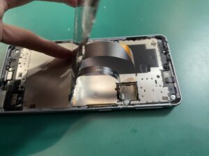 次に画面と基板をつなぐケーブルを外すために、画面ケーブルコネクタのカバーを外します。