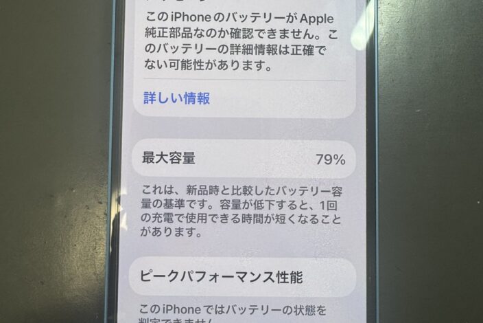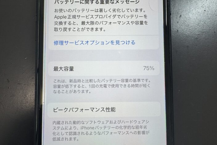 「設定」>「バッテリー」>「バッテリーの状態と充電」で最大容量を確認し、80%未満であれば交換をおすすめします。