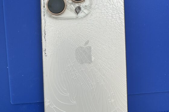 【iPhone 16Pro】バキバキに割れてしまった背面ガラス交換修理も即日対応可能です!!