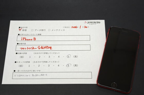 iPhone8フロントパネル交換修理のお客様からコメントを頂きました