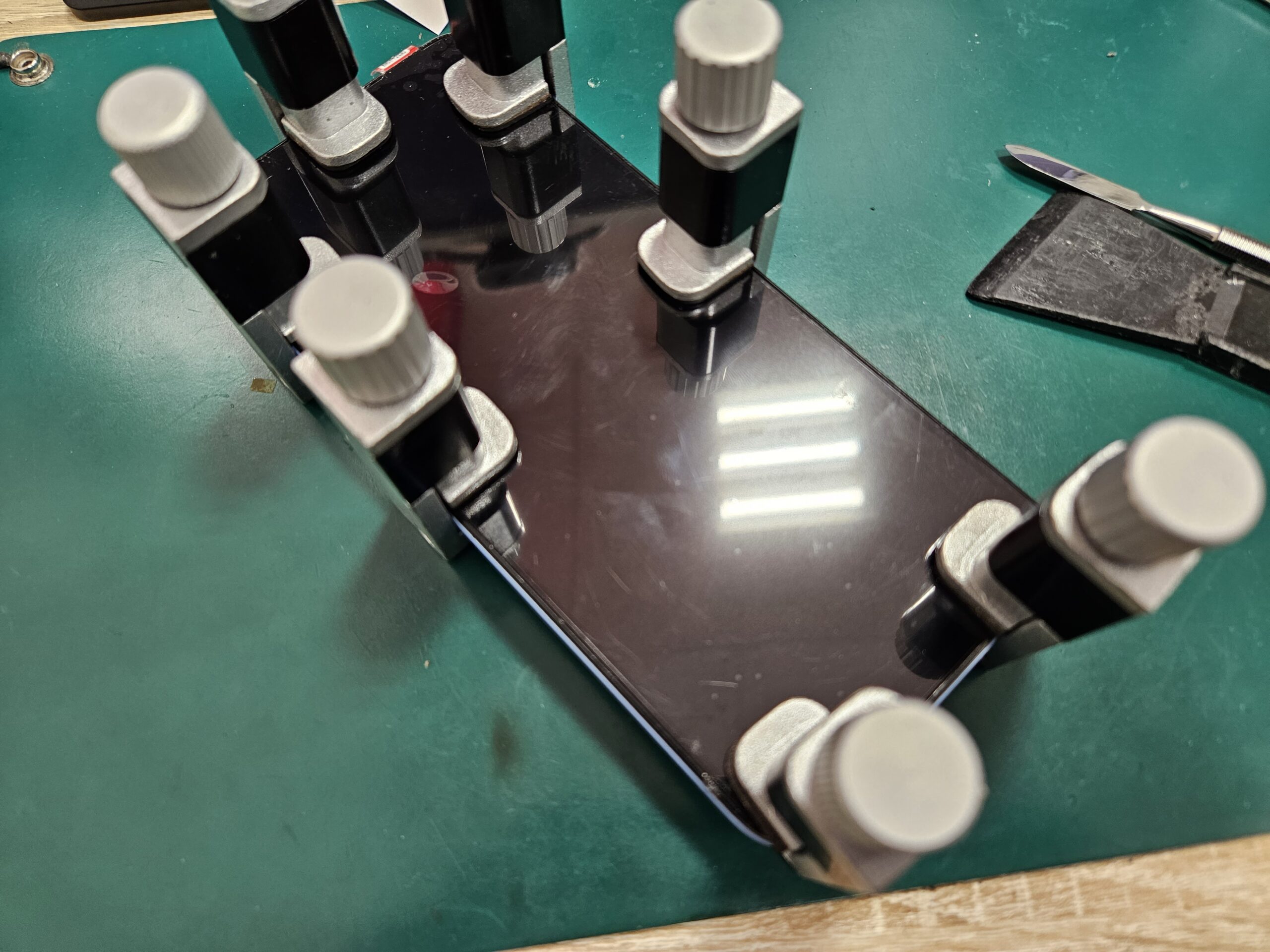 液晶表示自体は確認でき、タッチ操作は問題ないものの、全体にヒビが入ってしまい視認性が非常に悪いといった症状が発生しており、早急な画面交換が必要な状態でした。