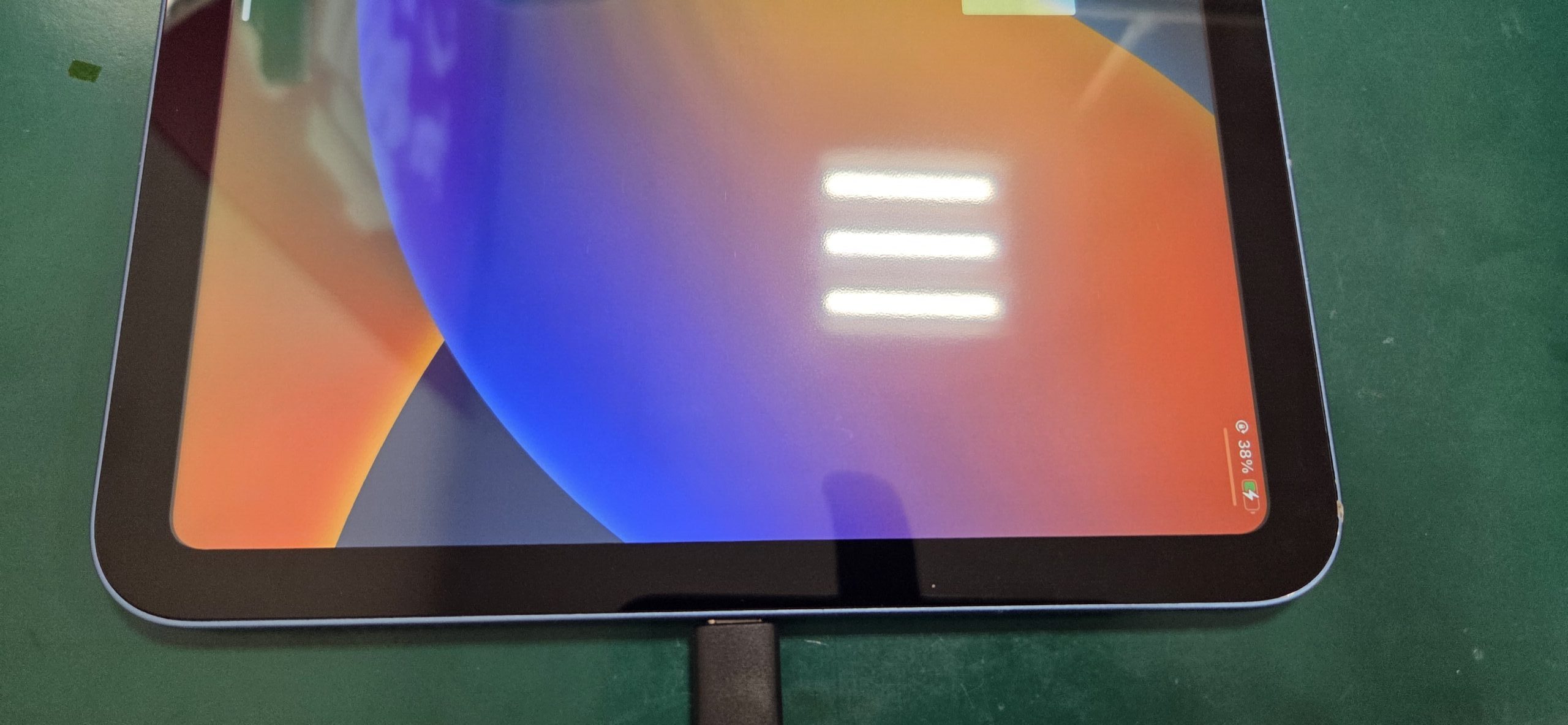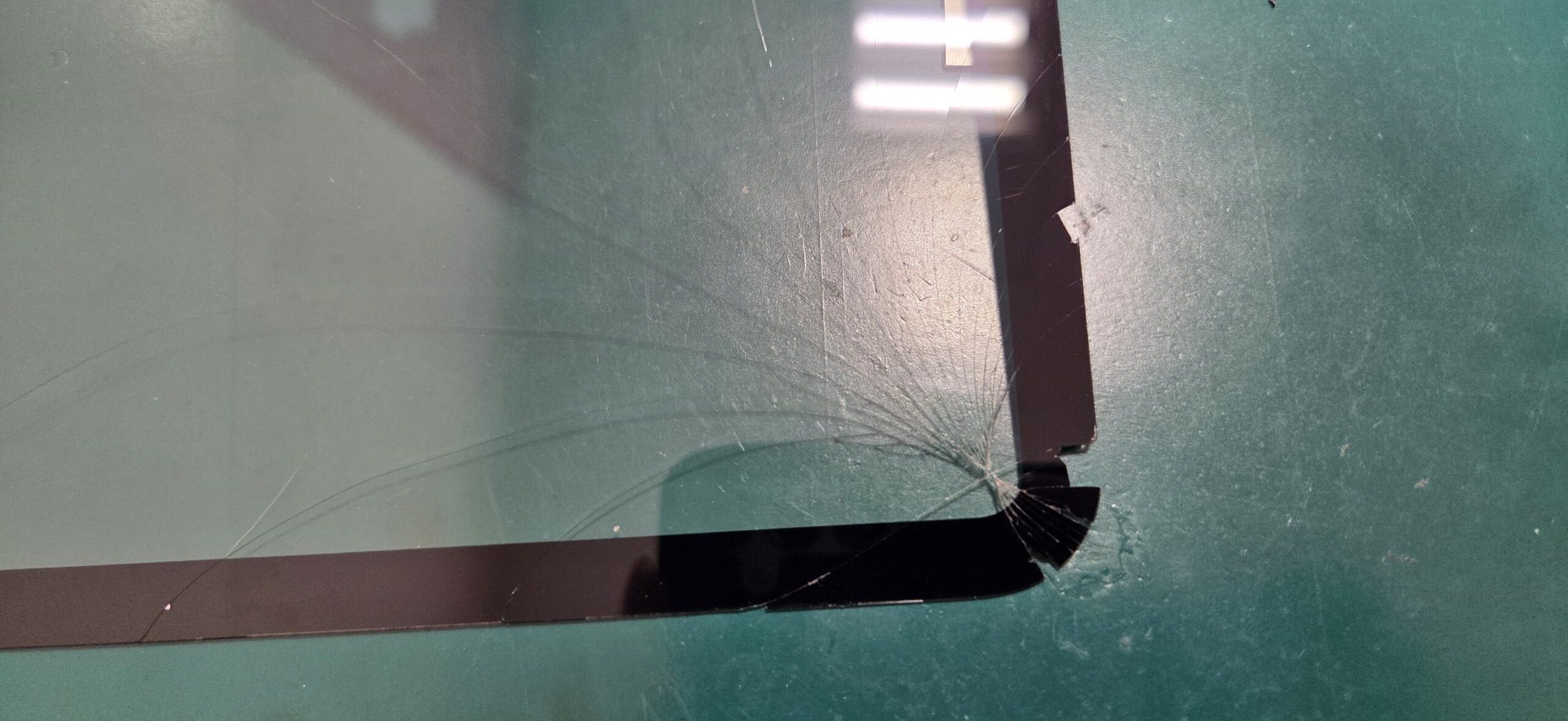 幸いにも液晶に損傷は見られませんでしたが、ガラスの割れ方がケガをしかねない割れ方でしたので、交換を行います!