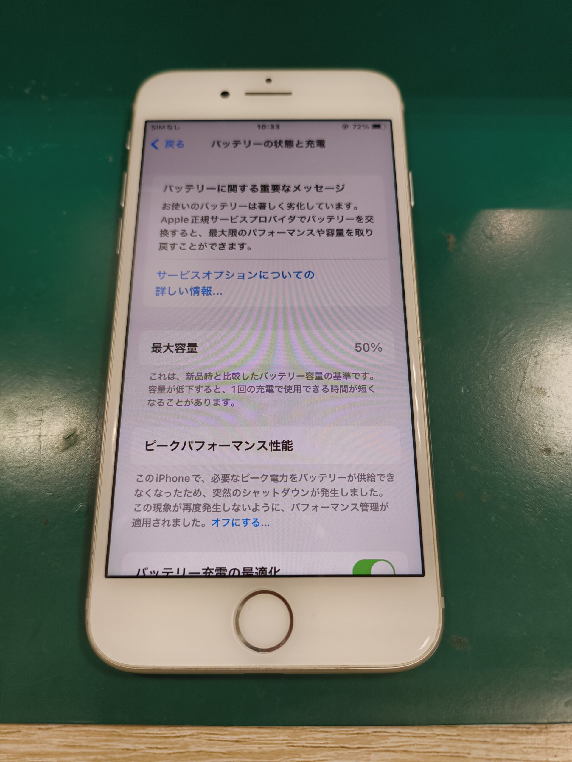 【iPhone8】まだ充電が半分以上もあるのにシャットダウン!早急にバッテリー交換をおすすめします!