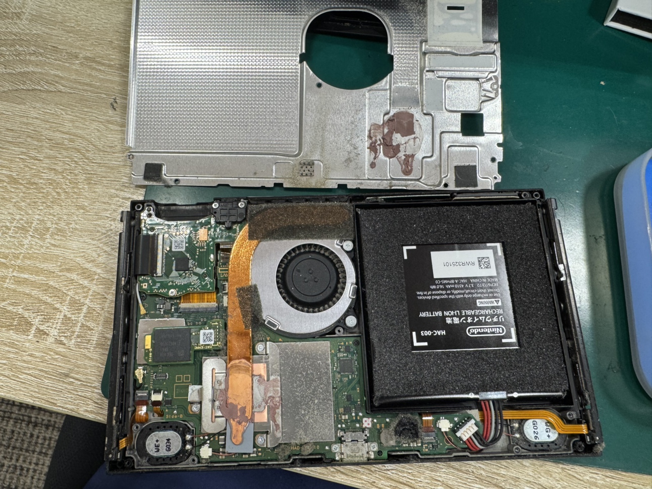 Switchの液晶は本体の背面から分解していき、銀色のフレームを取り外したら基板が見えてきますので