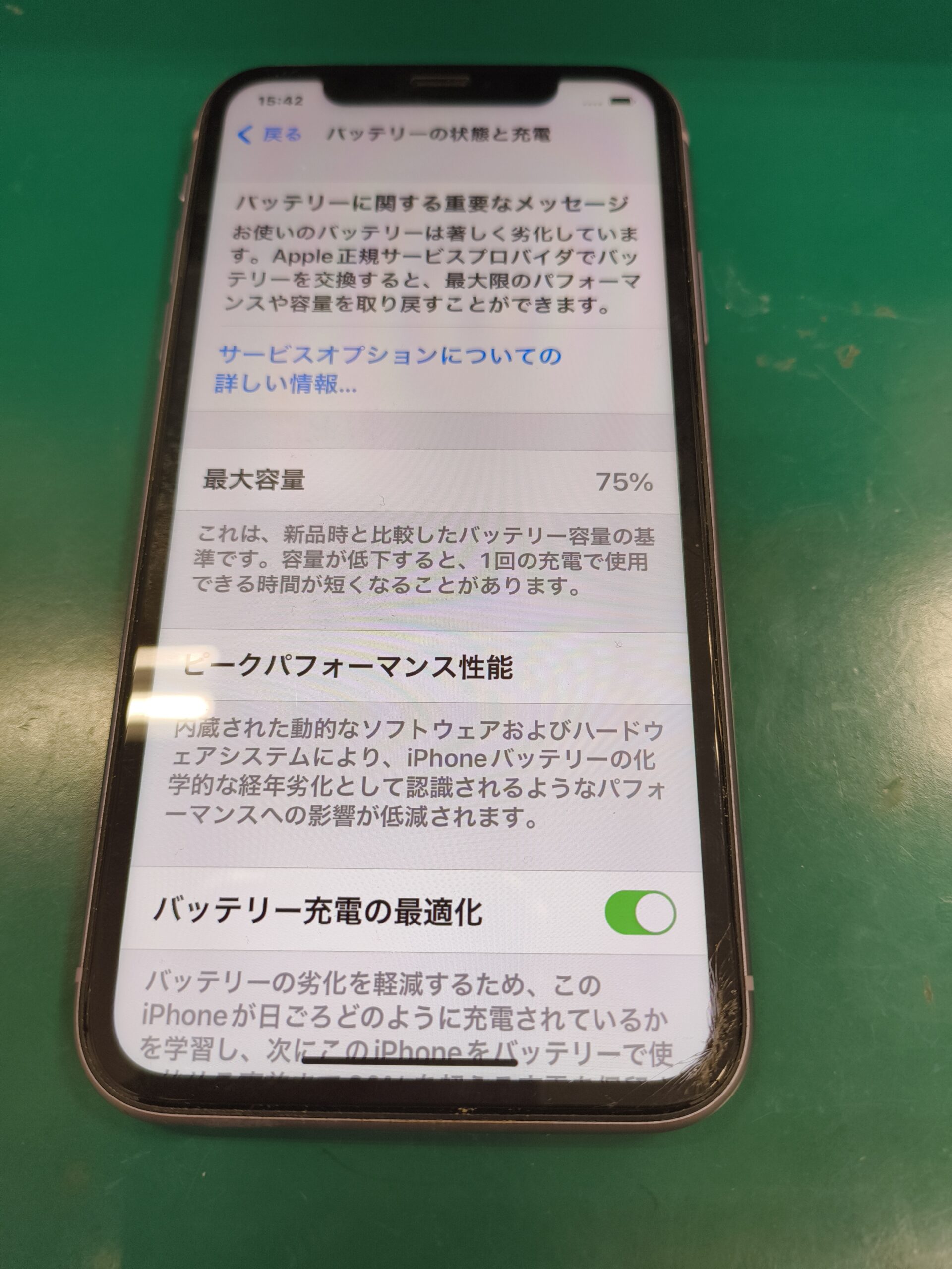 このiPhone11はバッテリーの替え時であると言えます。