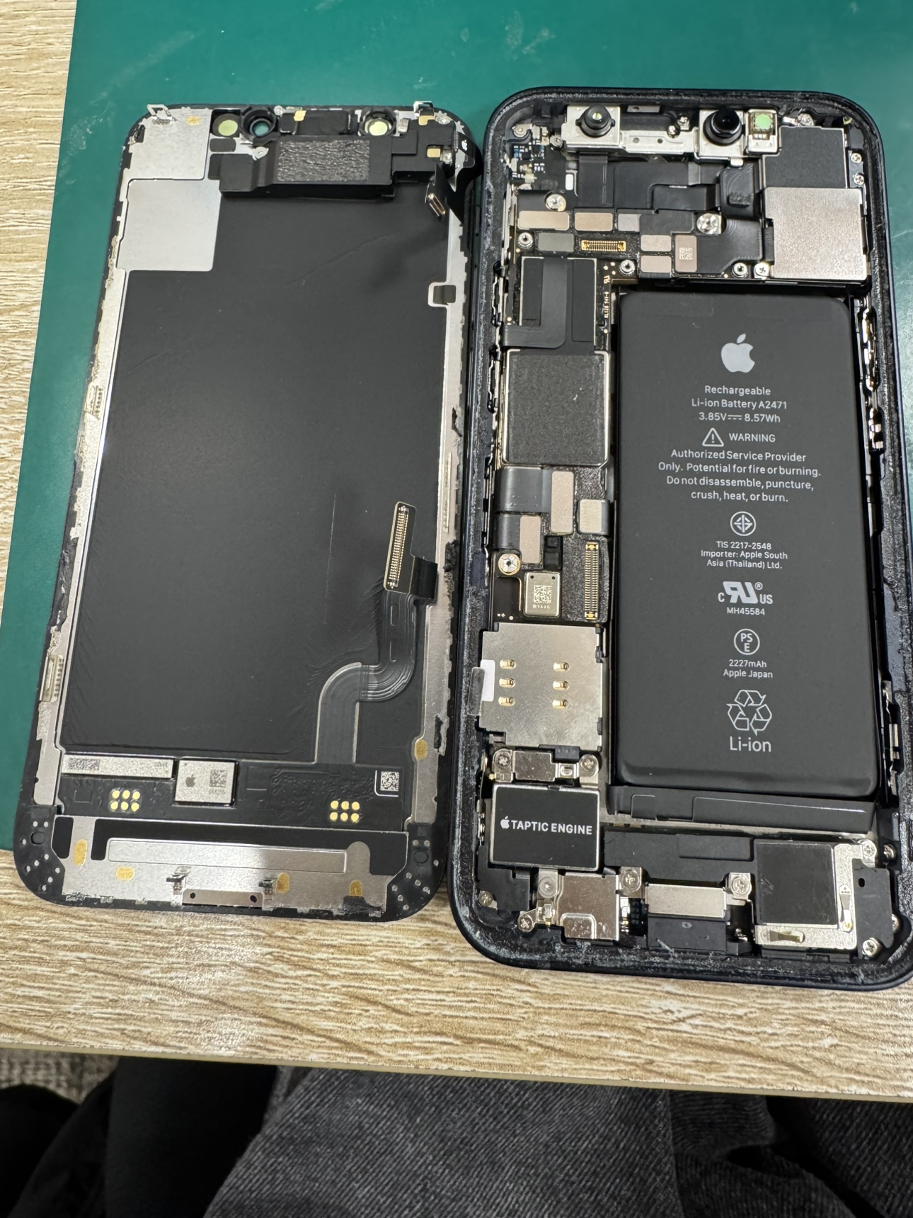 iPhone12miniは画面から開けて各種コネクターや、パーツを交換していきます。