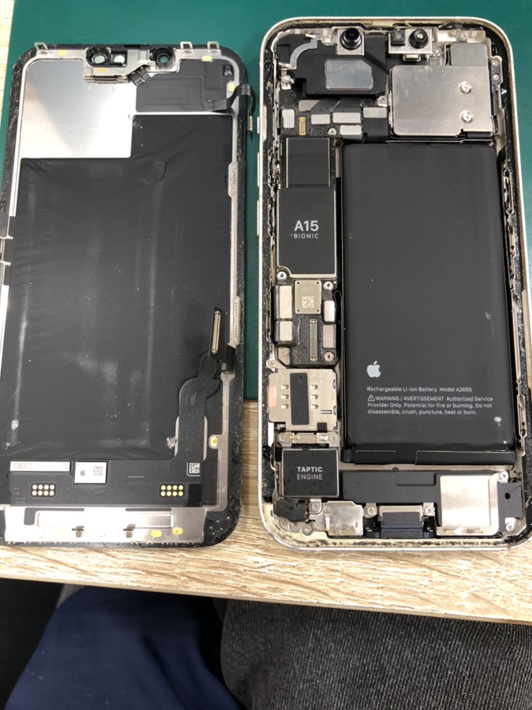 今回修理する端末iPhone13は画面から開けバッテリーを取り外していく端末になります。