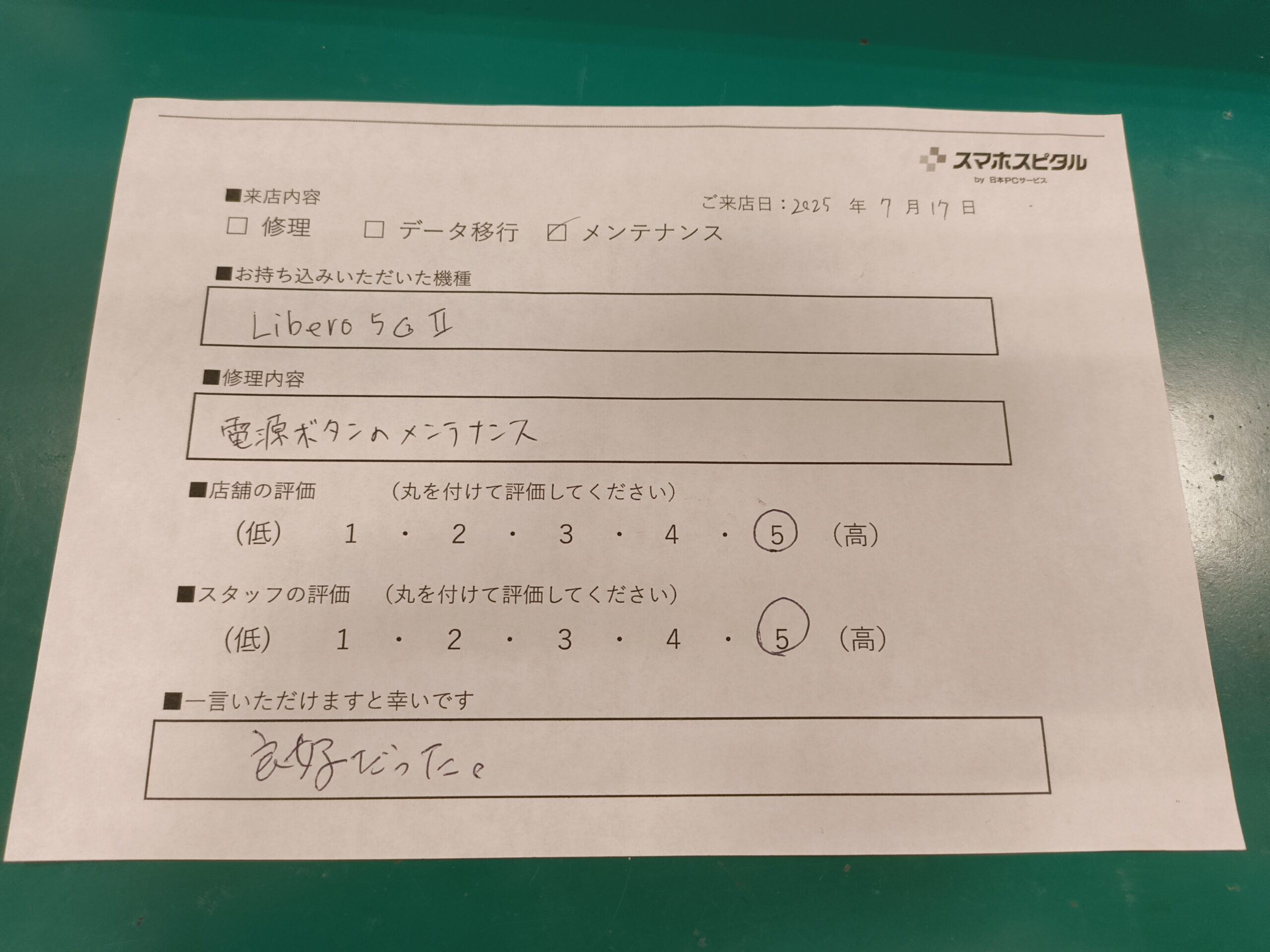 スマホスピタルイオン相模原 【Libero5G Ⅱ】お客様のお声をいただきました!
