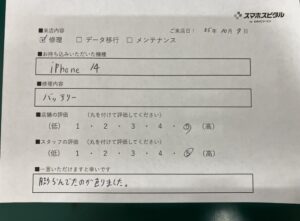 お客様の声をいただきました!
