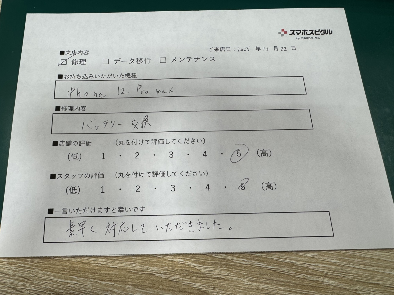iPhone12Pro Max バッテリー交換のお客様から頂きました。