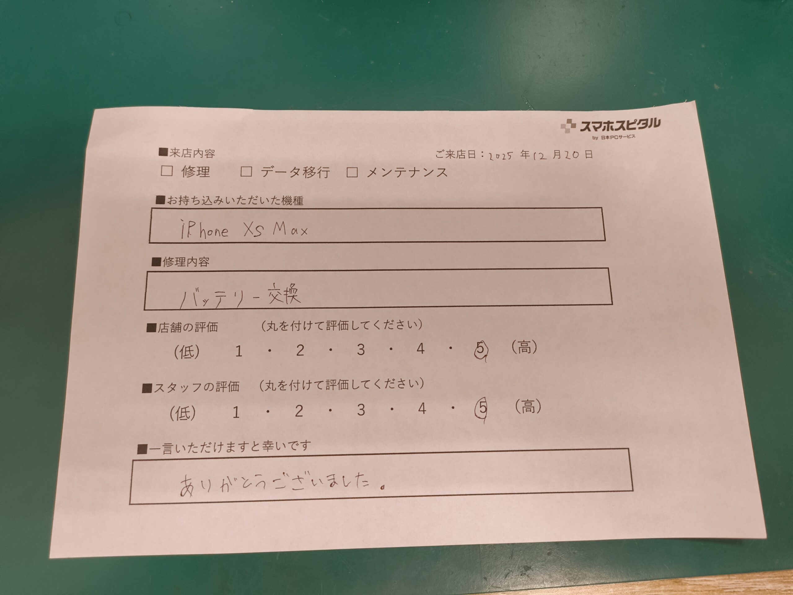 iPhone12Pro Max バッテリー交換のお客様から頂きました。