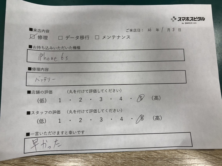 iPhone14 Pro Max バッテリー交換のお客様から頂きました