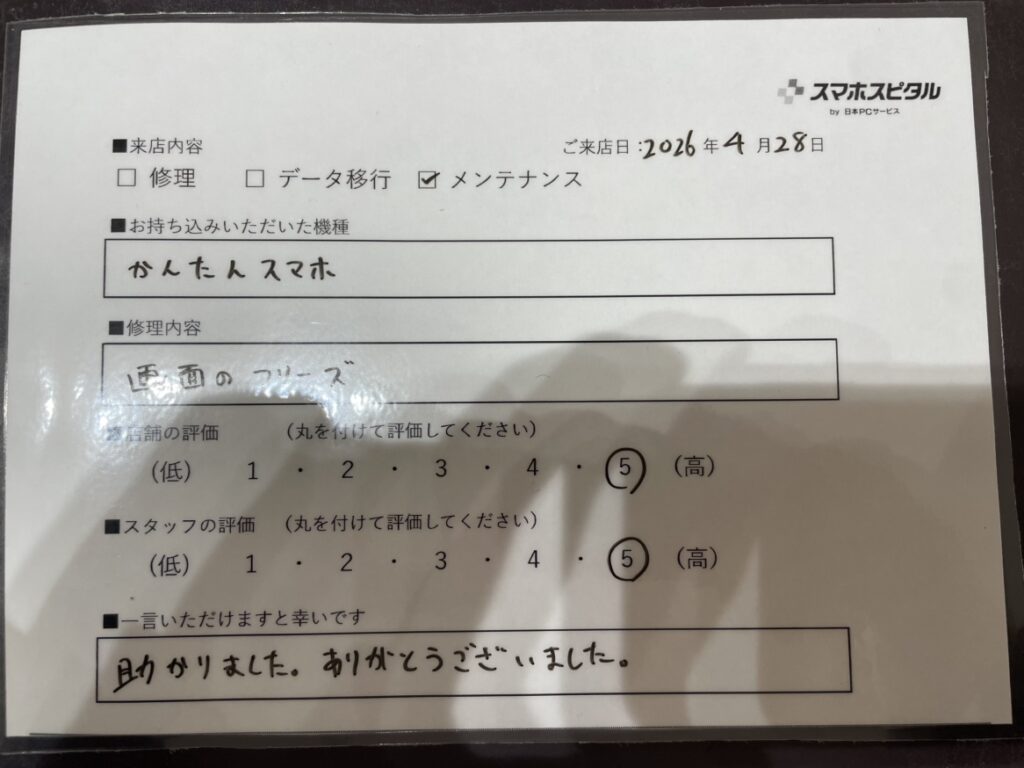 スマホスピタル堺 画面がフリーズしてしまったお客様のメンテナンスをさせていただきました